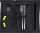 Tierra kaksiosainen pilli- ja aterinpidike on ihanteellinen mukanapidettävä setti, jos haluat vähentää kertakäyttöisten muovien käyttöä. Tämä setti sisältää kaksi ruostumattomasta teräksestä valmistettua pilliä, puhdistusharjan, sporkin, ja kaksi taitettua silikonipilliosaa, jotka voidaan yhdistää suoraan pilliosaan (ruostumatonta terästä). Näin juomamukavuus on huipussaan. Tuotteen kaksi eri väriä helpottavat osien toisistaan erottamisessa. Pakattu käytännölliseen pussukkaan Velcro-sulkijalla. Voidaan pestä tiskikoneessa. Ulkopuoli 100% 600D polyesteria, sisäpuoli 100% 210D polyesteria. PVC vapaa.